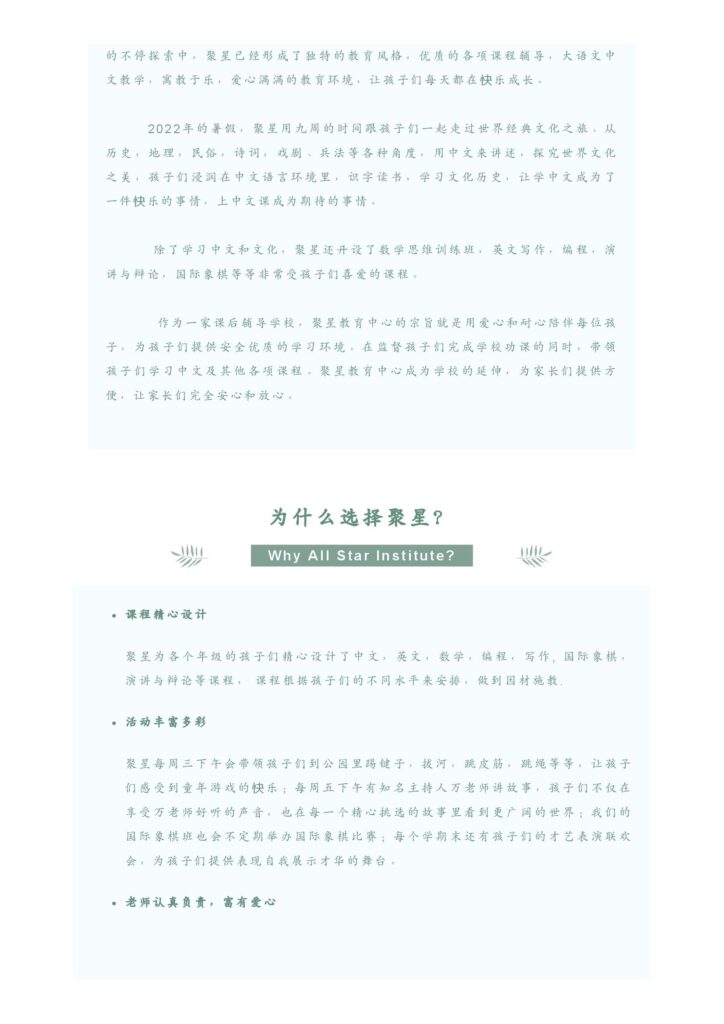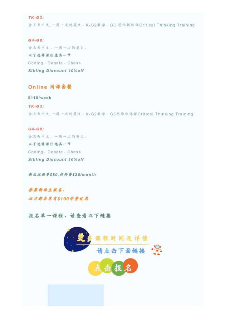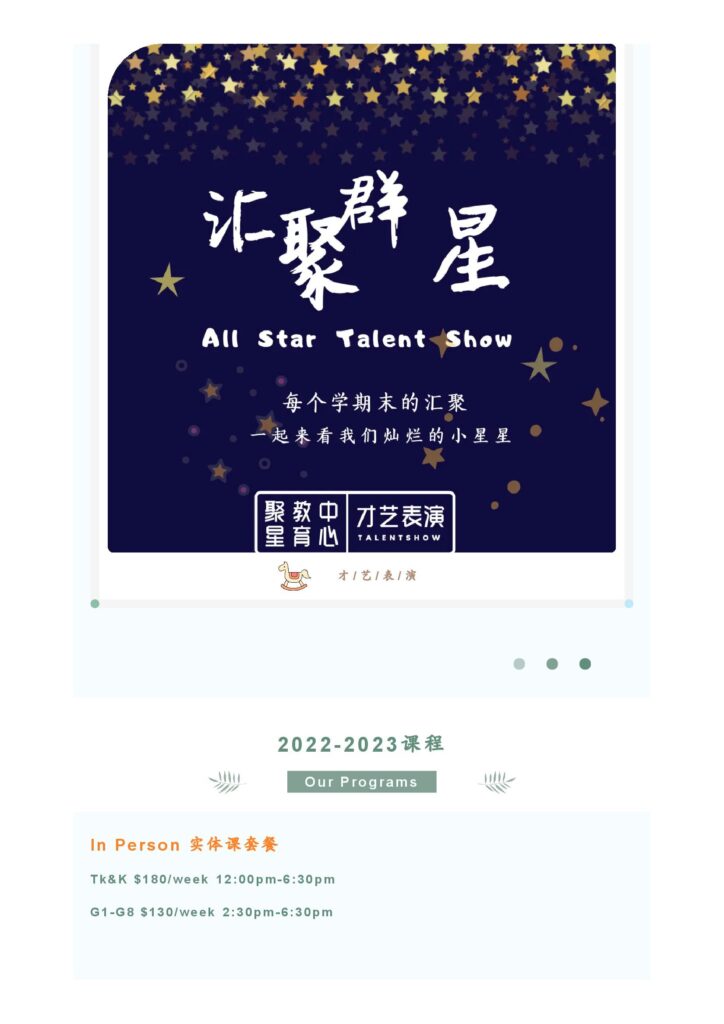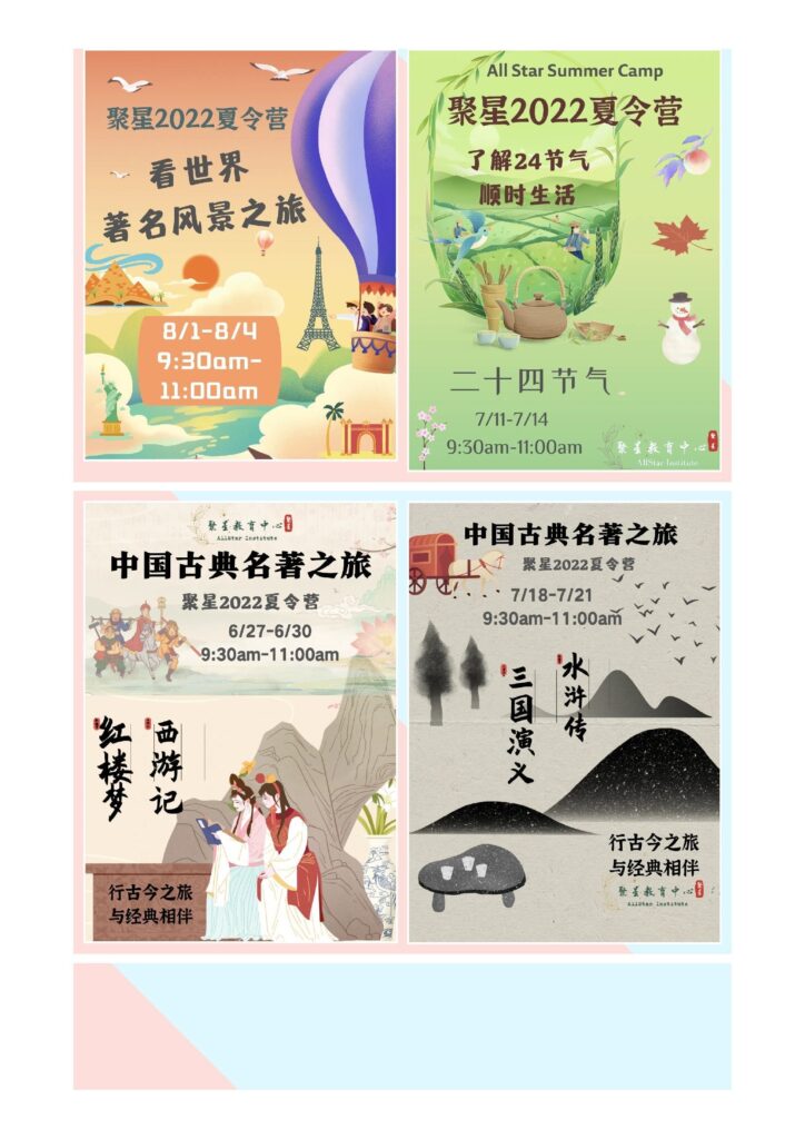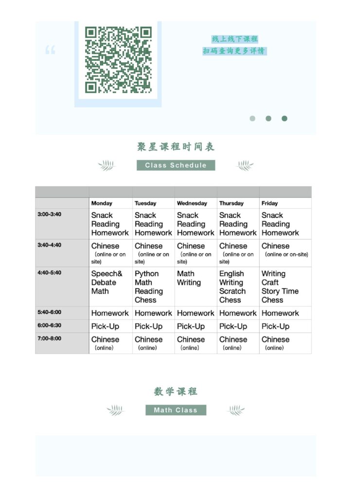 Enjoy While Learning Enjoy While Learning Covid-19 Compliant If you are a reoccurring student and know our programs simply click below to register 2023 Year Round After School Education Program Application Form Photo Release Form 课表 – After-School Programs 2023 年暑假开始招生 (In-Class Sessions Are Back!) 中文 ENGLISH After-School 课程安排星期一 至 星期四:3:00pm – 3:30pm: 点心/中文故事/眼保健操3:30pm – 6:00pm: 英文学校作业,本校课程/Common Core练习/本校选修课程星期五:3:00pm – 3:30pm: 点心/眼保健操/ 中文故事/眼保健操3:30pm – 6:00pm: 快乐中文、航模、 手工、娱乐 After-School ScheduleMonday – Thursday:3:00pm – 3:30pm: Homework/Snack/Ocular Exercises, Chinese Storytime3:30pm – 6:00pm: Chinese/ Homework/Common Core Practice/Classes provided by AllStarFriday:3:00pm – 3:30pm: Snack/Ocular Exercises/Chinese Storytime3:30pm – 6:00pm: Amusing Chinese, Handicraft, Model Planes, Entertainments 本校免费课程包括: 每日中文、数学、英文(写作/阅读/ Common Core练习/Phonics)美术创作、Coding、(各年级) (只限K 班)国际象棋、 选修课程: (一年级及以上年级)国际象棋、航模, Coding MPM 数学(各年级) GATE 辅导班(三年级) Free Classes: Everyday Chinese, Math, English, Common Core Practice, Drawing, Coding (K only) Chess, Elective Classes: Drawing, Model Planes, Coding & Chess (G1 and above) MPM Math (all grades) GATE test prep (3rd grade only) All StarAll Star InstituteModel Airplane & StorytimeBowling Previous Next